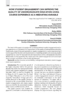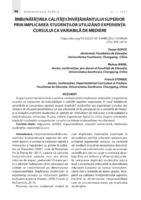 Îmbunătățirea calității învățământului superior prin implicarea studenților utilizând experiența cursului ca variabilă de mediere Scopul acestei lucrări este de a analiza corelația dintre implicarea studenților și experiența cursului ca mecanism de îmbunătățire a calității studiilor superioare. În mod tradițional, cercetările se concentrau separat asupra implicării studenților sau experienței cursului, dar rămâne de discutat posibilitatea că cea ulterioară să fie percepută ca o variabilă de mediere a evaluării implicării studenților în calitate de instrument de măsurare și îmbunătățire a învățământului universitar. În plus, trebuie argumentat faptul că critica asupra conceptelor implicării studenților și experienței cursului contribuie la dezvoltarea lor ulterioară.