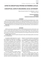 Aspecte conceptuale privind autonomia locală Definirea principiului autonomiei locale, ca unul de bază al procesului administrativ, este absolut crucială. Există opinii diferite în acest sens, fiind relaționate cu alte concepte conexe așa ca descentralizarea administrativă, democrația locală și altele. Articolul își propune să formuleze unele aspecte conceptuale generale privind autoguvernarea pe baza diverselor idei, evenimente și acte istorice.