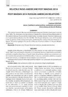 Relațiile ruso-americane post maidan 2014 Relațiile dintre Moscova și Washington au atins punctul cel mai scăzut de la începutul anilor 1980. Criza ucraineană a acționat ca un catalizator pentru o deteriorare accentuată și profundă a relațiilor dintre Rusia și Statele Unite. Actualmente, relațiile ruso-americane sunt într-un declin fără precedent de la Războiul Rece. Criza ruso-ucraineană, soldată cu ocuparea peninsulei Crimeea, a condiționat răcirea relațiilor ruso-americane. Prezentul articol scoate în relievanță specificul relațiilor ruso-americane din perioada post Maidan 2014.
