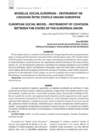 Modelul social european – instrument de coeziune între statele Uniunii Europene Uniunea Europeană, în prezent, reprezintă, un adevărat catalizator de schimbare în ceea ce priveşte guvernarea statelor, elaborare politicilor şi impunerea unor modele sociale în spaţiul european. Statele membre a comunităţii europene, dispun de propriile modalităţi de elaborare a politicilor sociale, care reglementează asistenţa socială, asigurările sociale, organizarea şi funcţionare sistemului de servicii sociale etc., însă instituţiile europene coordonează reglementările adoptate şi stabileşte principii, valorii şi obiective comune. În prezent, tot mai des, politicienii, factorii de decizie, doctrinarii pun în discuţie conceptul de „model social european” şi prerogative de dezvoltare a acestuia. În aceste context, ne-am propus să analizăm conceptul şi trăsăturile modelului social european, şi să identificăm modelele sociale existente la nivelul UE.