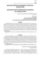 Educația pentru toleranță în contextul globalizării Procesul de globalizare, care inițial a dominat doar sfera economică, ulterior a determinat profunde transformări sociopolitice și culturale, influențând relațiile interetnice și interconfesionale în medii multiculturale şi plurilingve. În acest context, toleranța a devenit o sursă fundamentală a coexistenței pașnice a societăților multietnice, facilitând cooperarea și contribuind la evitarea confruntărilor/conflictelor de valori și norme. Educaţia pentru toleranță a devenit un mijloc eficient de prevenire a intoleranței, propagând un mod de gândire indulgent şi constructiv, exprimat prin respectarea normelor de convieţuire socială și comportament tolerant.