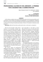 Professional Culture of Civil Servants - a Premise for a Modern Public Administration In this article, we address the issue of professional culture of civil servants and the role of universities in their training and professional development. The contradictions underlying the issue, the essence and content of professional culture are addressed; proposals are made on the tools for training the professional culture of future civil servants in university study programs.