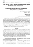 Conceptualizarea pregătirii profesionale prin învățarea organizațională Studiul are drept obiectiv analiza conceptualizării pregătirii profesionale prin învățarea organizațională. Materialele incluse în cercetare reprezintă articole, monografii, publicate în țară și peste hotare. Metodele aplicate includ: inducția, deducția, analiza comparată, sinteza surselor bibliografice. Este definit aparatul conceptual și abordate unele teorii cu referire la procesul de pregătire profesională, reliefate aspecte teoretice ale învățării, precum și concepte utilizate pentru evocarea activității respective. Un loc special este acordat definirii activității de pregătire profesională prin învățarea organizațională. Concluzia finală rezidă în necesitatea sporirii calității capitalului uman prin valorificarea procesului de învățare în cadrul organizațiilor.