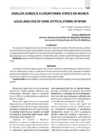 Analiza juridică a unor forme atipice de muncă Conceptul de muncă atipică devine unul tot mai studiat în ultimele decenii, doctrinarii încercând să-l definească, să dea o clasificare a formelor de muncă atipică și fac propuneri în vederea prefecționării legislației muncii sau creării unui nou mecanism de reglementare juridică a unor forme de muncă atipică care în prezent se află în afara cadrului legal.