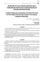 Probleme actuale privind identificarea temeiurilor pentru efectuarea măsurilor speciale de investigație Activitatea specială de investigații reprezintă una dintre cele mai des aplicate acțiuni ale organelor de ocrotire a normelor de drept în vederea descoperirii pe urme fierbinți a faptelor antisociale. Un rol primordial în cadrul acestei activității îi revine procesului de efectuare a măsurilor speciale de investigații, inclusiv consemnarea rezultatelor acesteia. La etapa actuală, în practica judiciară, subiecții activității speciale de investigații deseori se confruntă cu unele probleme de ordin normativ în vederea realizării măsurilor speciale de investigații, fapt pentru care ne propunem să le abordăm tangențial în prezenta lucrare.