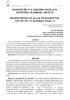 Manifestări ale coeziunii sociale în contextul pandemiei COVID-19 Problema abordată în articol rezidă în studiul manifestărilor coeziunii sociale în contextul pandemiei COVID 19. Studiile sociale sunt cruciale pentru a înțelege impactul pandemiei asupra societății moldovenești, flexibilitatea administrației publice în situații de criză emergentă, reacția grupurilor sociale și identificarea mecanismelor de gestionare. Metodologia de cercetare este una preponderent calitativă, menită să contribuie la înțelegerea și explicarea problemei abordate. Concluziile formulate ne conduc spre ideea că pandemia COVID 19 a afectat mai multe dimensiuni ale coeziunii sociale.