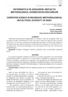 Informatica în asigurări: reflecții metodologice. Diversitatea riscurilor Sunt propuse abordări teoretice şi practice a riscurilor asigurărilor; sunt nenumărate interpretările posibile a noțiunii de risc; sunt propuse modalități de organizare a publicitarilor activităților companiilor de asigurări; sunt argumentate necesitățile de creștere a numărului persoanelor asigurate. Asigurările, în materialul propus, sunt considerate o formă de ,,vânzare a riscurilor”. Individul asigurat, în acest caz ocolește riscul, nu suportă pierderile potențiale.