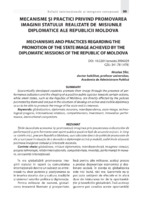 Mеcanisme şi practici privind promovarea imaginii statului realizate de misiunile diplomatice ale Republicii Moldova Țările dezvoltate economic își promovează imaginea prin prezentarea indicatorilor de performanță și prin formarea unei opinii publice pozitive față de anumite acțiuni, în timp ce statele mici, precum Republica Moldova, sunt afectate direct de politicile promovate de ele și sunt puse în situația de a dezvolta o diplomație activă și mobilă, astfel încât să poată promova imaginea statului și interesele acestuia.