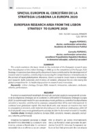 Spațiul europen al cercetării de la Strategia Lisabona la Europa 2020 În articol se examinează tendințele de bază ale evoluției spațiului european de cercetare de la adoptarea Strategiei de la Lisabona în 2000 până la finalizarea Strategiei Europa 2020. Se examinează modul în care aceste documente politice au contribuit la dezvoltarea cercetării și inovării, contribuind la creșterea competitivității UE la nivel internațional, în contextul unei globalizări rapide. Mai mult decât atât, este necesar să investim mai mult în cunoaștere și cercetare, atât material cât și din punct de vedere al conținutului, altfel UE riscă să piardă concurența globală pentru poziția de lider în domeniul cercetării și inovării.