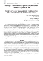 Evoluţia teoriei birocraţiei în organizarea administraţiei publice Acest articol încearcă să facă o analiză cum au evoluat principiile birocratice de organizare a administraţiei publice de la Max Weber până la administraţia publică la începutul secolului al XXI-lea. Se menţionează că formularea lui M. Weber cu privire la tipul ideal de birocrație este o abordare clasică a administraţiei publice. Practica administraţiei publice confirmă că birocraţia nu este atât de previzibilă şi clară cum este descrisă în teoria birocraţiei a lui M. Weber. Spre deosebire de modelul ideal al birocraţiei elaborat de M. Weber, sistemul actual al administraţiei publice este un sistem deschis şi înglobează caracteristici mult mai complexe. Acest fapt este condiţionat de un şir de factori ce influenţează activitatea administraţiei publice inclusiv: nivelul de dezvoltare a democraţiei, dezvoltarea economică şi socială, tehnologiile informaţionale, stilul de conducere, cultura administrativă, profesionalizarea funcţionarilor publici ş.a.