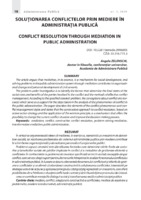 Soluţionarea conflictelor prin mediere în administraţia publică În articol se argumentează ideea că medierea, în esenţa sa, reprezintă un mecanism de dezvoltare socială, iar rezolvarea problemelor din sistemul administraţiei publice prin mediere contribuie la schimbarea organizaţională şi dezvoltarea personală a funcţionarilor publici. Problema supusă cercetării este identificarea factorilor care determină stările finale ale costurilor și beneficiilor sociale ale părților implicate în conflict și a metodelor de gestionare eficientă a conflictelor. În conformitate cu problema de cercetare specificată se trec în revistă concepţiile despre conflict, care servesc drept suport pentru demersurile întreprinse în analiza fenomenului conflictului în administraţia publică. În lucrare se descriu elementele fenomenului conflictual şi stilurile de gestiune a conflictelor și se afirmă că abordarea constructivă în soluţionarea conflictelor, întemeiată pe strategia activă de acţiune şi aplicarea principiului câştig/câştig reprezintă un mecanism, care oferă posibilitatea de schimbare a situaţiei conflictuale curente şi de îmbunătăţire a procesului decizional. ceea ce contribuie esenţial la dialogul social şi transformarea reală a administraţiei publice.