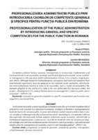 Profesionalizarea administrației publice prin introducerea cadrelor de competențe generale și specifice pentru funcția publică din România Gestionarea resurselor umane bazată pe competențe este din ce în ce mai implementată și utilizată la nivel mondial ca o abordare inovatoare, strategică și flexibilă a managementului forței de muncă din sectorul public. Ca orice altă reformă a administrației publice, este un proces complex și îndelungat care, deși se bazează pe soluții metodologice, conceptuale și tehnice din experiența internațională, trebuie adaptat contextului social, economic, administrativ și instituțional național pentru a avea succes. Un astfel de model de cadru de competență adaptat realității unui stat este cel elaborat pentru România în cadrul proiectului „Dezvoltarea unui sistem unitar de management al resurselor umane în administrația publică” - SIPOCA 136.