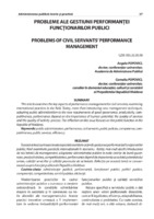 Probleme ale gestiunii performanței funcționarilor publici În acest articol sunt examinate aspectele esențiale ce țin de gestiunea performanței funcționarilor publici, fiind examinate practicile internaționale în domeniu. Astăzi, mai mult decât introducerea de noi tehnici de management, adaptarea administrației publice la noile cerințe de bună guvernare, productivitatea, competitivitatea, performanța depind de importanța acordată potențialului uman, calității serviciilor și calității procesului de activitate. Reflecția pe această temă se concentrează asupra funcției publice din Republica Moldova.