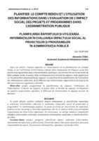 Planifier le compte rendu et l’utilisation des informations dans l’evaluation de l’impact social des projets et programmes dans l’administration publique Dans cet article, l’auteur rapporte sur l’anticipation et la planification du compte rendu, et sur l’utilisation d’information colecte dans l’évaluation de l’impact social des projets et programmes dans l’administration publique. L’accent est mis sur la nécessité de faire compte rendu, le public cible, la fréquence et le format du rapport, mais également sur les personnes responsables du rapport. La question de la planification de l’utilisation des informations collectées, de la diffusion des informations rapportées et de la prise de décision future est également abordée.