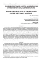 Reglementări privind dreptul salariatului la contestarea sancțiunilor disciplinare În articolul dat a fost supus cercetării materialul ce vizează dreptul salariatului la contestarea sancțiunilor disciplinare, care constituie un drept constituțional. Inițial, s-a făcut referire la legalitatea emiterii ordinului de aplicare a sancțiunilor disciplinare și familiarizării salariatului cu conținutul său. S-a analizat premisa de pornire a căii de atac asupra deciziei angajatorului, argumentul legislativ, conform căruia ordinul (dispoziţia, hotărârea) de sancţionare poate fi contestată de salariat în instanţa de judecată în condiţiile art. 355 al Codului muncii al Republicii Moldova. Judecătorul poate dispune pornirea sau refuză pornirea procesului de judecare a litigiului, pe motivul că față de asemenea act sunt înaintate condiții atât de fond cât și de formă, stabilite prin legislația procesual-civilă. S-a făcut trimitere și la rolul Inspectoratului de Stat al Muncii, al sindicatului care joacă un rol mai mult de negociere și explicare a prevederilor legislației muncii.