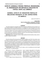 Aspecte generale privind profilul migrațional al migranților din Republica Moldova în Statele Unite ale Americii Articolul analizează fluxul emigrațional din Republica Moldova spre SUA în baza datelor statistice oferite de instituțiile specializate. Se cercetează modalitățile de emigrare, motivele care stau la baza luării deciziei de emigrare și interacțiunea cu comunitatea gazdă. Un interes deosebit prezintă legătura cu țara de origine, sursele de informare ale emigranților privind evenimentele social-politice. Asociațiile comunităților de moldoveni aflați în SUA constituie un potențial important pentru dezvoltarea Republicii Moldova, aceștia posedă un nivel de cunoștințe și abilități care ar putea fi implementate cu succes în țara de orgine.