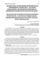Valorificarea oportunităților Programului Parteneriatul pentru Pace - factor de consolidare a relațiilor de cooperare cu Organizația Tratatului Atlanticului de Nord Participarea la Parteneriatul pentru Pace (PpP) îi oferă Republicii Moldova o reală posibilitate de a-şi consolida securitatea naţională şi capacităţile de apărare. Astfel, cadrul PpP ne permite să utilizăm experienţa construcţiei militare a ţărilor NATO şi partenere în scopul perfecţionării permanente a propriilor Forţe Armate, pregătirii cadrelor, instruirii lingvistice a ofiţerilor Armatei Naţionale, asigură accesul la informaţii, statistică, surse de ajutor politic, tehnic şi financiar. Un aspect aparte îl constituie familiarizarea militarilor moldoveni cu modalitatea organizării operaţiunilor de menţinere a păcii.