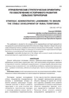 Управленческие стратегические ориентиры по обеспечению устойчивого развития сельских территорий Данная публикация посвящена анализу организационно-правовых подходов к управлению устойчивым развитием села. Село выступает актуальным центром исторической памяти, традиций и национального сознания народа. Для реализации потенциальных возможностей села необходимо внедрять современные организационно - правовые механизмы, обеспечить ресурсную и научно-консультационную поддержку.