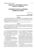 Principiul autonomiei locale: aspecte teoretice Principiul autonomiei locale este principiul, care nu poate exista separat de celelalte principii de bază ale administrației publice locale ca autonomia locală, descentralizarea serviciilor publice, eligibilitatea autorităților publice locale, consultarea cetățenilor în probleme de interes deosebit, dar importanța primordială rămâne indiscutabilă.