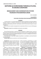 Gestiunea și coordonarea turismului fluvial în Uniunea Europeană Turismul fluvial reprezintă un model de succes de valorificare a rețelelor fluviale, în special, în țările din Europa Occidentală. Apariția sa a fost determinată de o puternică intenționalitate politică și acțiune publică. Caracterul vulnerabil, pluridisciplinar și, de multe ori, multinațional al domeniului fluvial necesită o gestiune complexă. Acest articol are ca scop studiul modului de gestionare și coordonare a turismului fluvial în Uniunea Europeană.