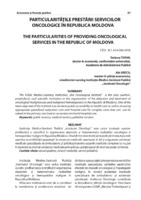 Particularitățile prestării serviciilor oncologice în Republica Moldova Instituția Medico-Sanitară Publică ,,Institutul Oncologic” este unica instituție curativ-profilactică și științifică în organizarea depistării și tratamentului maladiilor oncologice și hemopatiilor maligne în Republica Moldova. Unul dintre obiectivele principale ale Institutului este sporirea accesibilităţii populaţiei la asistenţa medicală oportună, la fel și asigurarea asistenţei medicale specializate de ambulatoriu şi spitaliceşti pentru cazurile medicale complexe ce nu pot fi rezolvate la nivel de asistenţă medicală primară sau spitalicească de nivel secundar teritorial.