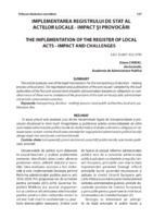 Implementarea Registrului de Stat al actelor locale - impact și provocări În acest articol este analizat unul dintre mecanismele legale de transparentizare a procesului decizional la nivel local. Înregistrarea și publicarea actelor emise/adoptate de către autoritățile administrației publice locale de nivelul întâi și al doilea a devenit o obligație, or nerespectarea acestor norme (încălcarea prevederilor Legii privind administrația publică locală) atrage după sine sancțiunea contravențională.