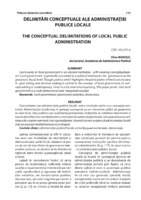 Delimitări conceptuale ale administraţiei publice locale Comunitatea sau administrația publică locală este o instituție veche cu o concepție evolutivă. Administrația locală este, în general, concepută ca un mecanism politic de guvernare la nivel local. Deși politica care subliniază participarea cetățenilor la stabilirea obiectivelor și luarea deciziilor este esențială pentru conceptul de administrație locală, conceptualizarea sa în timpurile noastre este mult mai cuprinzătoare. Această lucrare susține că administrația locală este un concept multidimensional și integrat.