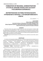 Formation of regional administration system in Ukraine taking into account the european experience The article analyses the regional administration formation and evolution in Ukraine after the independence reestablishment in 1991. In particular, the main problems of present administrative-territorial organization are revealed, the directions for further local self-government transformation according to European standards are outlined and the prospects for decentralization reform launched in 2014 are evaluated.