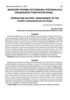 Abordări privind gestionarea personalului organizației turistice în Israel Managementul personalului reprezintă un evantai de diverse metode de influență managerială asupra organizării și condițiilor de muncă ale angajaților, formarea competențelor acestora, asigurarea unei utilizări maxime a potențialului forței de muncă a lucrătorilor în interesul întreprinderii