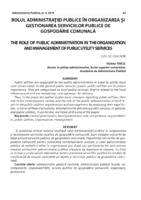 Rolul administraţiei publice în organizarea şi gestionarea serviciilor publice de gospodărie comunală În prezentul articol autorul studiază rolul administraţiei publice în organizarea şi gestionarea serviciilor publice de gospodărie comunală. Sunt studiate noţiunile de bază privind serviciile publice de gospodărie comunală, importanţa serviciilor de gospodărie comunală pentru societatea contemporană, precum şi rolul administraţiei publice de ambele niveluri în organizarea sau, după caz, gestionarea lor, prin prisma analizei atribuţiilor administraţiei publice stipulate de legislaţia în vigoare. La final se includ şi unele soluţii alternative pentru prestarea serviciilor publice în condiţii de insuficienţă de resurse, aplicabile pe deplin şi serviciilor publice de gospodărie comunală.