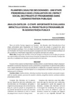 Planifier l’analyse des donnees - une etape primordiale dans l’evaluation de l’impact social des projets et programmes dans l’administration publique Dans cet article, l’auteur rapporte sur l’analyse des données, dans l’abordassions d’une étape primordiale dans l’évaluation de l’impact social des projets et programmes dans l’administration publique. C’est une étape essentielle du processus de planification du suivi et de l’évaluation de l’impact social des projets et programmes dans l’administration publique car elle conditionne l’information rapportée et la manière dont elle sera utilisée.