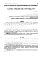 Integrarea Europeană văzută în procesualitatea sa Dezvoltarea Comunităților Europene, respectiv a Uniunii Europene, s-a realizat ca răspuns progresiv la problematica inclusă pe Agenda publică europeană a ultimilor 60 de ani. Aflată în căutarea unei identități proprii, CE/UE a trebuit să răspundă la o serie de întrebări fundamentale legate de dezvoltarea sa. Articolul se adresează explicit profesioniștilor, dar și celor care doresc să cunoască această realitate economico-socială numită UE. Autorul abordează problematica aleasă dintr-o perspectivă politică, utilizând pe larg instrumente specifice științelor juridice și economice. Semnatarul acestui articol înțelege dreptul comunitar ca fiind dreptul public european, iar politicile comune ale CE/UE ca fiind politici publice europene.