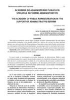 Academia de Administrare Publică în sprijinul reformei administrative În acest studiu se examinează activitatea Academiei de Administrare Publică, unica instituție de învățământ superior de profil administrativ din republică, care pe parcursul a unui sfert de secol s-a afirmat plenar în calitate de centru național de promovare a politicii de stat în domeniul administrației publice, de pregătire și de dezvoltare profesională a personalului, de efectuare a cercetărilor în domeniul științei administrației și de asistență metodologică a activității autorităților administrației publice.