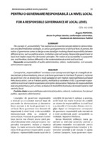Pentru o guvernare responsabilă la nivel local Conceptul de guvernare responsabilă a evoluat ca un concept esențial legat de procesele de democratizare și descentralizare, precum și de bună guvernare la nivel local. Buna guvernare este deosebit de importantă la nivel local, unde autoritățile interacționează zilnic cu cetățenii și comunitățile. Procesul de guvernare la nivel local devine mai eficient atunci când procesul decizional este unul participativ, responsabil, transparent, incluziv și respectă legea.