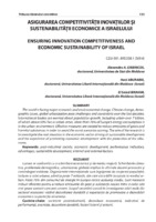 Asigurarea competitivității inovațiilor și sustenabilității economice a Israelului Lumea se confruntă cu o schimbare economică și de mediu majoră. Schimbările climatice, problemele demografice, urbanizarea globală implică în ultimele decenii provocări și constrângeri evidente. Organismele internaționale sunt îngrijorate de creșterea populației, inclusiv a celei urbane, până la peste 7 miliarde, din care circa 60% locuiește în mediul urban. Peste 76% din consumul de energie în Europa revine aceluiași mediu. Sunt necesare măsuri eficiente pentru a reduce emisiunile de gaze și substanțe nocive întru a evita cele mai grave scenarii care pot surveni. Scopul cercetării constă în investigarea stării reale din sectorul economic vizând dezvoltarea durabilă și experiența de promovare a dezvoltării economice cu protecția oicumena.