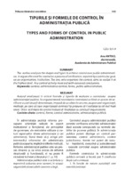 Tipurile și formele de control în administrația publică Autorul analizează în articol formele și tipurile de realizare a controlului asupra administrației publice. Se argumentează necesitatea controlului ca fiind un proces de verificare a unei situații determinate, impusă de un obiectiv anume, asupra unei organizații, instituții, pe care cel care organizează controlul își propune să-l realizeze la cel mai înalt nivel. Orice activitate de control trebuie să finalizeze cu concluzii argumentate.