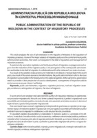 Administrația publică din Republica Moldova în contextul proceselor migraționale În acest articol este analizat rolul administrației publice din Republica Moldova în reglementarea proceselor migraționale. Întrucât unul dintre subiecții importanți ai politicii migraționale sunt autoritățile administrației publice centrale și locale, este cercetată activitatea acestora în domeniul reglementării și gestionării proceselor migraționale. Este examinată baza normativ-legislativă și instituțională de gestionare a migrației și este argumentat faptul că realizarea politicii migraționale este prerogativa autorității administrației publice centrale în domeniul migrației în colaborare cu alte structuri de stat și nestatale. În rezultatul analizei documentelor și materialelor în domeniu autorul a constatat că în ultimii ani, în rezultatul transformărilor social-economice, a reformei administrației publice, problema migrației a fost inclusă pe prim-plan în agenda națională. Totodată, guvernarea trebuie să ofere o perspectivă clară de dezvoltare a țării, a politicilor și proceselor migraționale pentru a asigura bunăstarea cetățenilor.