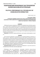 Политический перформанс как технология коммуникативной интеракции Политический перформанс анализируется как новейший формат общения в системе ,,власть - общество”, появление которого обусловлено снижением потенциала традиционных технологий политической коммуникации. Обосновывается, что перформанс следует понимать, как действие субъекта, осуществляемое в определенном месте и в определенное время, которое имеет публичный, демонстративный характер и реализуются через своеобразное театрализованное представление. Перформанс является творческим актом субъекта, его самовыражением через действия, адресованные определенной аудитории.