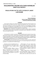 Reglementări privind aplicarea normelor dreptului muncii În articolul dat s-a realizat o cercetare în materia aplicării actului normativ în ramura dreptului muncii. În acest context, s-a făcut referire la aplicarea normelor dreptului muncii în spaţiu și asupra persoanelor și la efectele juridice care se produc. De asemenea, s-a evidențiat: distingerea modului de aplicare a normelor internaţionale în dreptul naţional; stabilirea relaţiei dintre normele internaţionale ale muncii şi normele dreptului naţional.