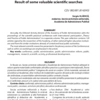 Annually, the Editorial Activity division of the Academy of Public Administration edits the proceedings of the scientific-practical conferences with international participation „Theory and Practice of Public Administration”, in a separate volume. This year collection contains 120 articles signed by the researchers of the Academy, of other national higher education institutions and from the similar institutions abroad, of central and local public authorities. The most relevant scientific researches presented in the plenary session of the Conference as well as within six workshops are emphasized in the article.