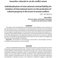 The subject of the individualization of international criminal liability in case of violation of the international norms on the protection of cultural property in the event of armed conflicts has been questioned due to the evolution of international humanitarian law but mainly due to the emergence and development of international criminal law. Whether the problem of international responsibility of states no longer raises controversy among doctrines, then because of the latest developments in the field of international criminal law, it is necessary to identify the basis of international individual liability and to determine the conditions for engaging the international criminal liability of individuals.