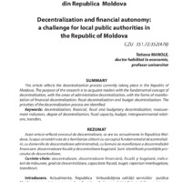 Decentralization and financial autonomy: a challenge for local public authorities in the Republic of Moldova
