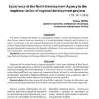 TOFAN, Tatiana. Experiența Agenției de Dezvoltare Nord în realizarea proiectelor de dezvoltare regional. In: Administrarea Publică, 2017, nr. 3(95), pp. 104-108. ISSN 1813-8489.