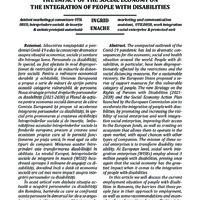 The unexpected outbreak of the Covid-19 pandemic has led to dramatic consequences for the economic, social and health situation around the world. People with disabilities, in particular, have been disproportionately affected by the restrictions and the social distancing measures. For a sustainable recovery, the European Union proposed a series of support measures for this vulnerable category of people. The new Strategy on the Rights of Persons with Disabilities (20212030) and the Social Economy Action Plan launched by the European Commission aim to accelerate the integration of people with disabilities, by promoting and increasing the visibility of social enterprises and work integration social enterprises, improving their access to the European funds, as well as creating an ecosystem that allows them to operate in the open market, with equal chances with other types of companies. The mission of these social enterprises is to transform disability into ability. At European level, social work integration enterprises (WISEs) employ almost 3 million people with disabilities, proving once again that the social economy has the greatest impact when it comes to the integration of people with disabilities. In this article we will discuss the current employment situation of people with disabilities in Romania, the barriers that these people face in their approach to employment, as well as some recommendations and examples of good practices for an effective integration of people with disabilitise.
