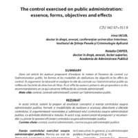În acest articol, autorii își propun să analizeze conceptul și esența controlului asupra administrației publice; formele și modalitățile de realizare a acestuia; obiectivele și efectele controlului. Ei argumentează necesitatea și subliniază rolul controlului asupra administrației publice, ca activitate distinctă a statului. În acest scop, autorii prezintă propuneri și recomandări cu privire la sporirea eficienței controlului asupra administrației publice.