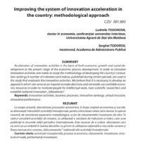 TODOROVA, Liudmila, TODOROV, Serghei. Perfecționarea sistemului de accelerare a activității inovaționale în țară: abordare metodologică. In: Administrarea Publică, 2017, nr. 4(96), pp. 92-101. ISSN 1813-8489.