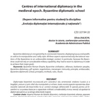 DULSCHI, Silvia. Centre ale diplomaţiei internaţionale în epoca medievală. Școala diplomatică bizantină. In: Administrarea Publică, 2017, nr. 4(96), pp. 103-107. ISSN 1813-8489.