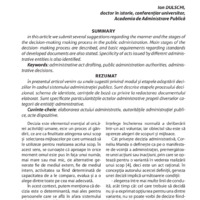 În prezentul articol venim cu unele sugestii privind modul şi etapele adoptării deciziilor în cadrul sistemului administraţiei publice. Sunt descrise etapele procesului decizional, schema de identiate, cerinţele de bază cu privire la redactarea documentului elaborat. Sunt specificate particularităţile actelor administrative proprii diverselor categorii de entităţi administrative.