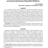 Publicația științifică denotă tendințe de cercetare științifico-academică a procedurilor de: investigare, dezvoltare, evaluare, implementare, aplicare în practică, renovare și evoluționare a domeniului care se referă la standardele europene și internaționale e-guvernamentale ce manifestă un impact oportun asupra procesului decizional al Republicii Moldova, care, de asemenea, dezvoltă imaginea relației ierarhice dintre e-guvernare și procesul decizional prin intermediul creării unor situații modelate și obținând recursiv în repercusiune aspectul standardelor internaționale ce pot rezolva dilemele existente în spațiul micromediului încadrat în macromediul care progresează continuu emergent evoluției ireversibile a fenomenului globalizării etc.