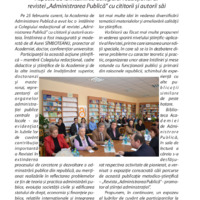 - Pe 25 februarie curent, la Academia de Administrare Publică a avut loc o întâlnire a Colegiului redacţional al revistei „Administrarea Publică” cu cititorii şi autorii acesteia. Întâlnirea a fost inaugurată şi moderată de dl Aurel SÎMBOTEANU, prorector al Academiei, doctor, conferenţiar universitar.